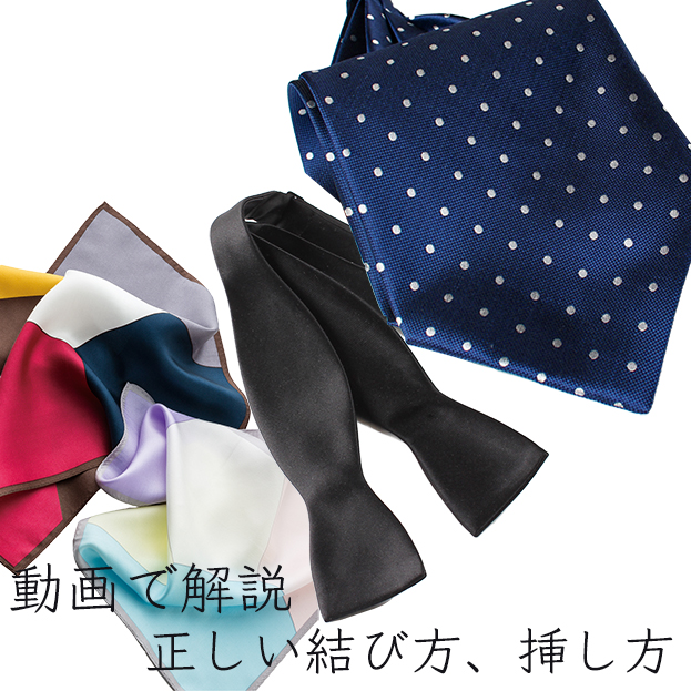 蝶タイの正しい結び方、チーフの挿し方など動画で解説いたします。